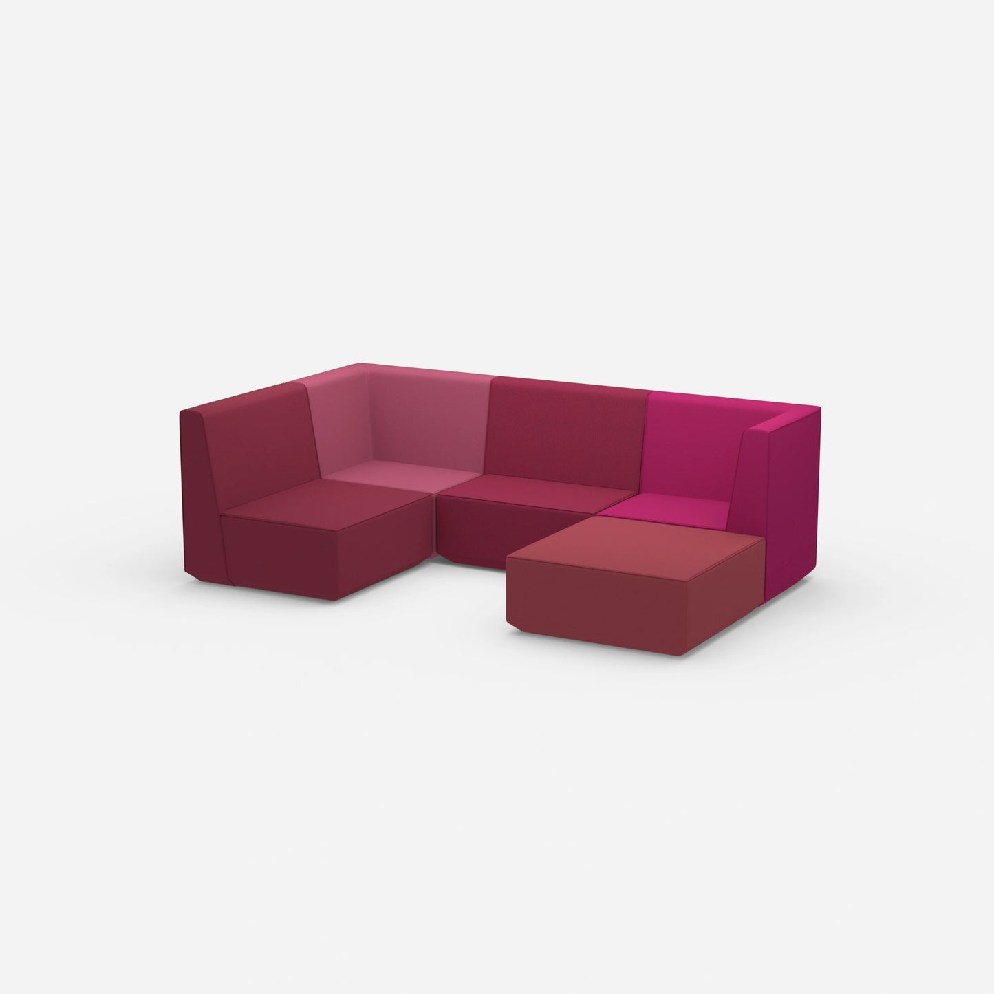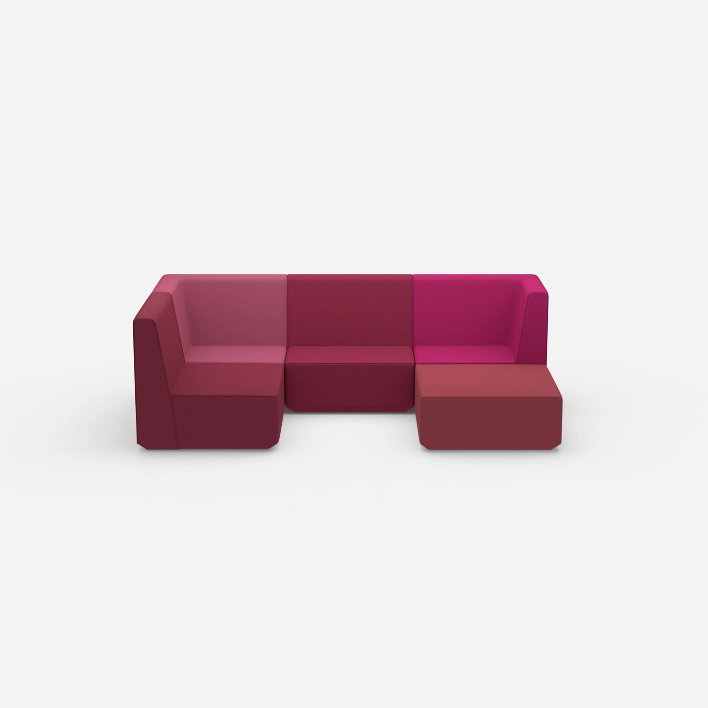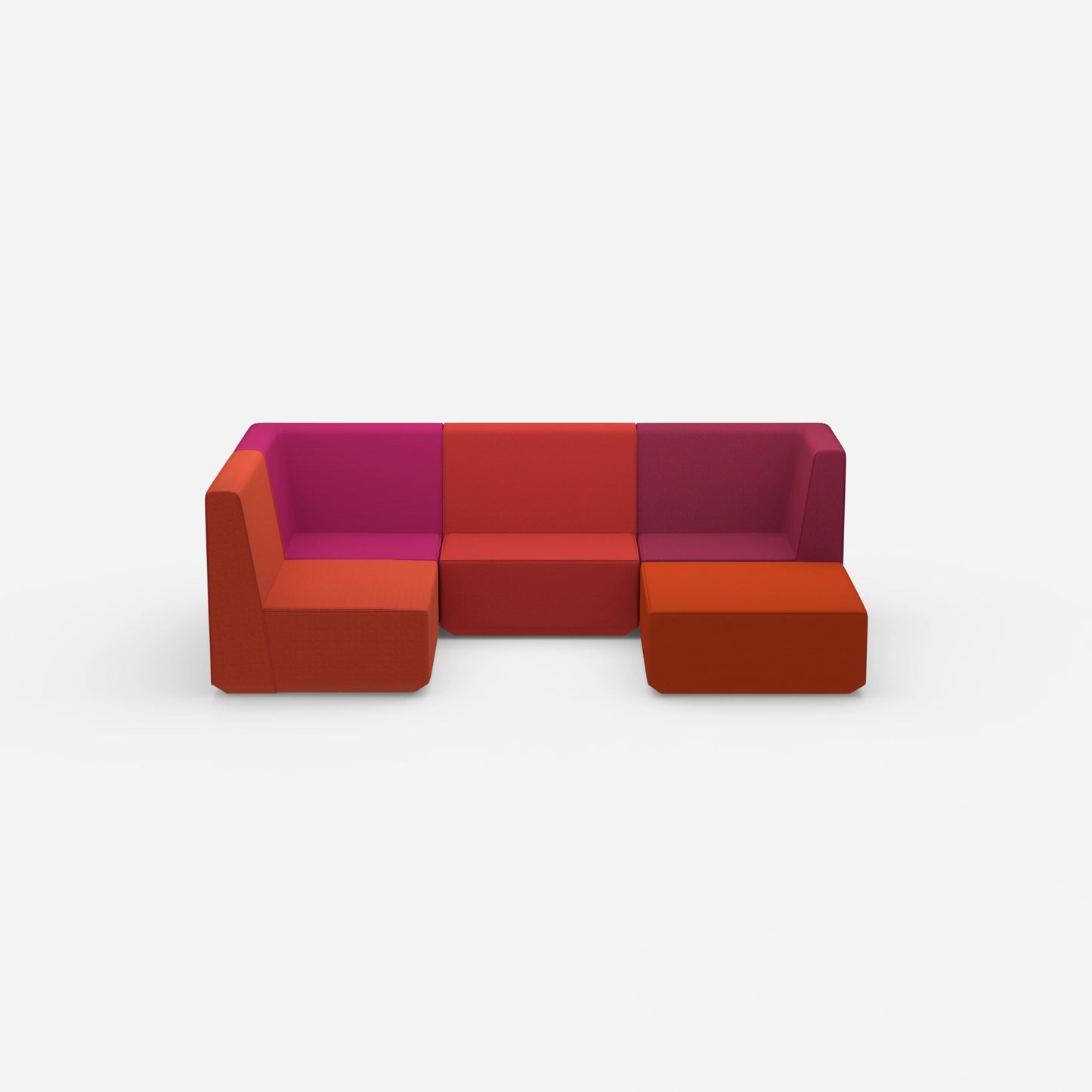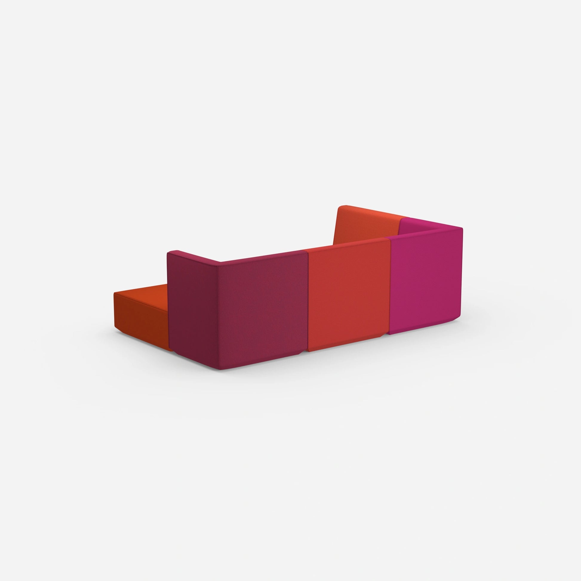 Verschieden konfigurierte Cubit Sofa Module in einem großen, offenen Raum – zeigt die Vielfalt an Kombinationsmöglichkeiten und Farben