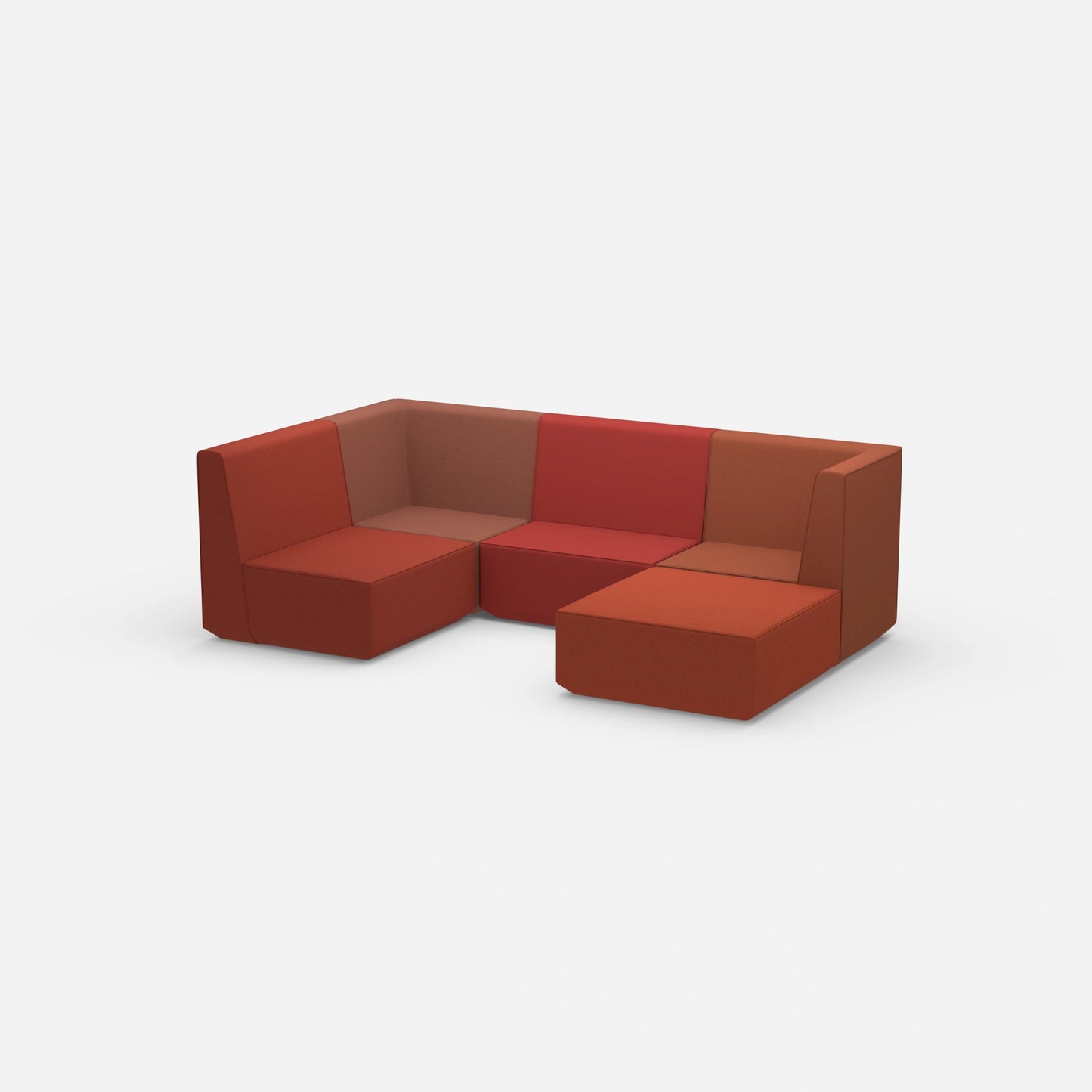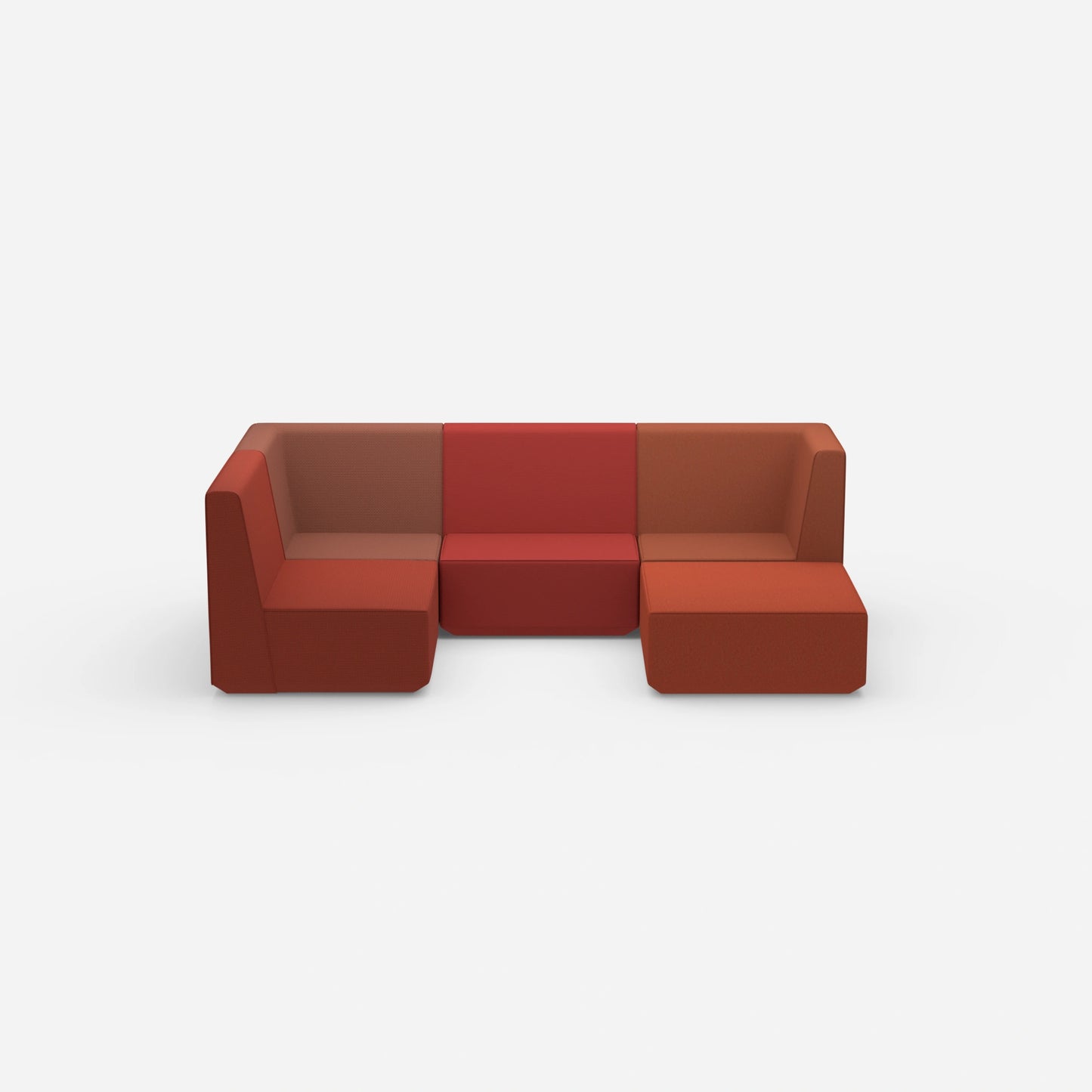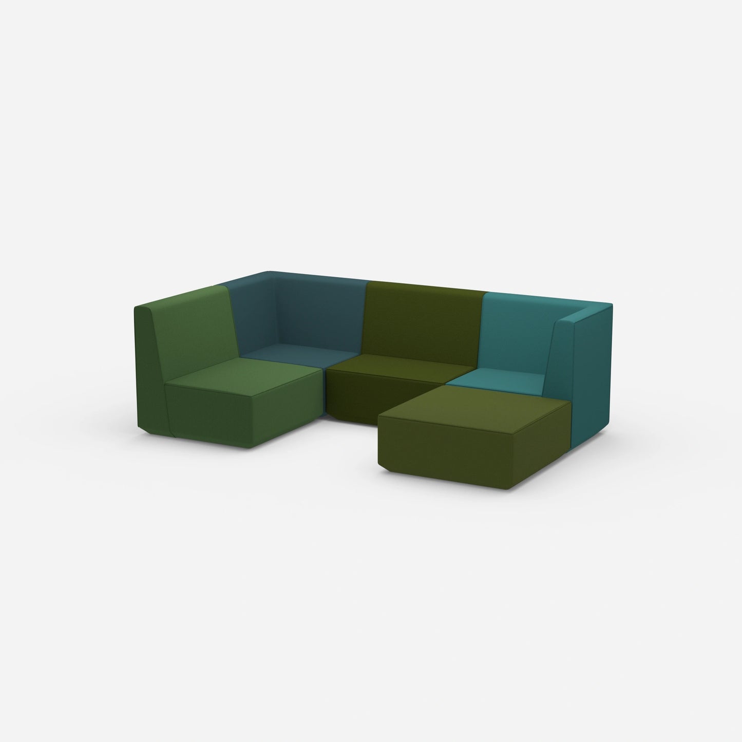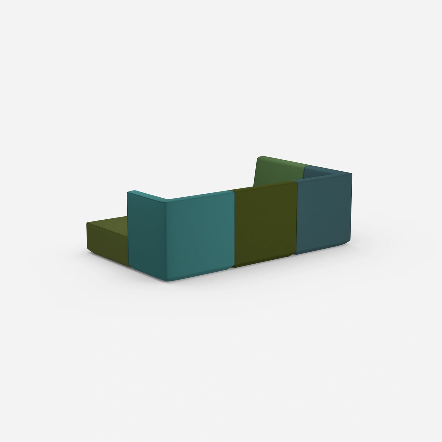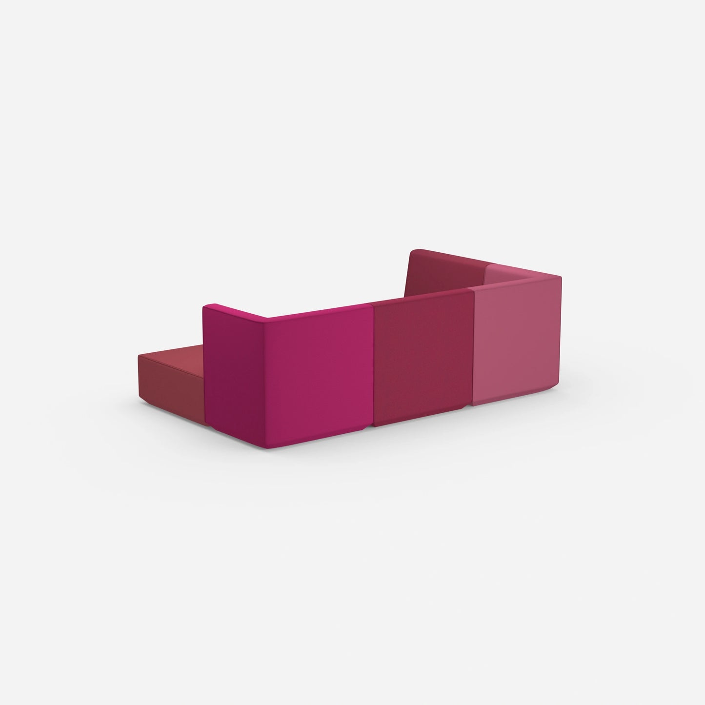 Verschieden konfigurierte Cubit Sofa Module in einem großen, offenen Raum – zeigt die Vielfalt an Kombinationsmöglichkeiten und Farben